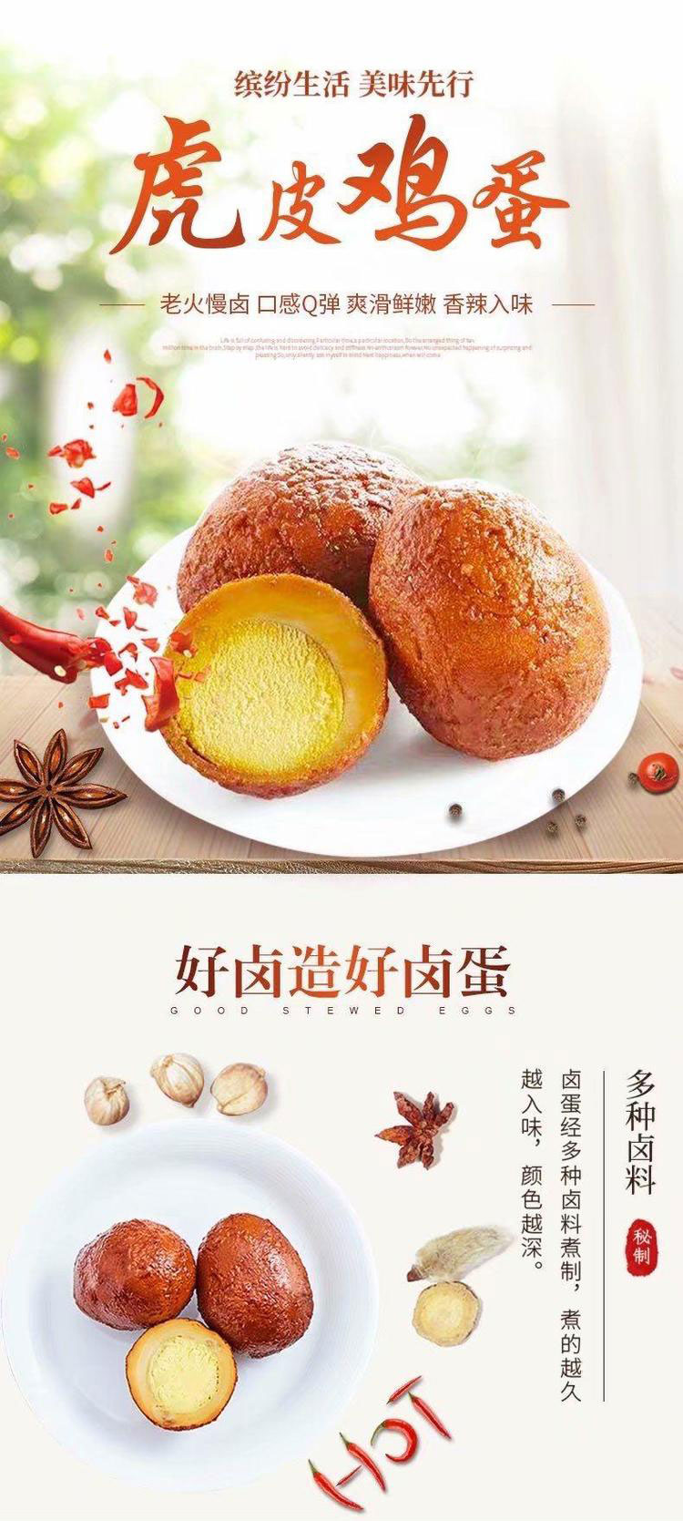 ????往鍋中加入足夠的油,熱至七成熟,把雞蛋瀝干,下入鍋中,調(diào)制中火,進(jìn)行炸制?;鸩灰{(diào)太大,否則會(huì)糊。在炸雞蛋的時(shí)候雞蛋會(huì)上浮,雞蛋上浮時(shí)往雞蛋的緩緩的澆上熱油,雞蛋全部變成金黃色時(shí),會(huì)有表皮突出,這時(shí)就可以把雞蛋撈出瀝干油分了。往鍋中加入少量油,加入適量豆瓣醬,翻炒出紅油,把炸制好的雞蛋倒入鍋中,調(diào)制大火,湯汁沸騰后調(diào)制小火,這樣虎皮雞蛋就做好了,不僅顏色好看,而且味道也非常不錯(cuò)。